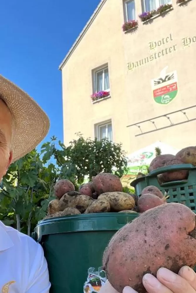 Dining at Haunstetter Hof is a highlight: the on‑site restaurant and beer garden serve a mix of seasonal, regional and international cuisine, including classic Bavarian dishes like grilled chicken in the house style, modern interiors, and vegetarian/vegan options along with a hearty breakfast buffet — available as continental or vegetarian choices — and warm, attentive service.