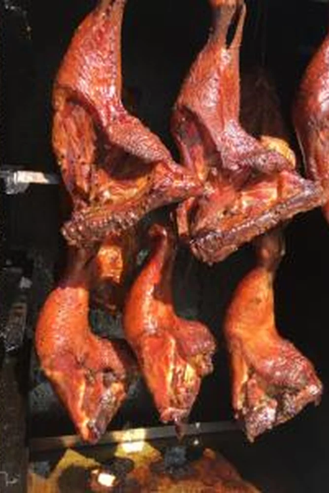 Tenemos dos reglas sobre la comida cuando viajamos: si hay cola, ¡entra!, y si hay un pez gordo en la propiedad, te espera algo delicioso. Este lugar no nos decepcionó. La trucha ahumada está fantástica. Las verduras sabían como si las hubieran recogido ese mismo día. Y el pez estaba deliciosamente gordo y amigable. Disfrutamos de un pastel de manzana recién hecho de postre. ¡Vale la pena visitarlo! Nos encontramos con nuestros anfitriones a las 11 de la mañana mientras estaban remodelando el albergue. ¡Gracias por complacernos con nuestro almuerzo temprano!