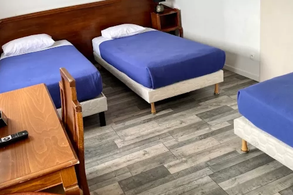 Je suis choquée que cet hôtel ait 2 étoiles nous sommes arrivés le soir la réception était fermée mais on nous a donné toutes les indications pour rejoindre sans souci notre chambre. Quand nous sommes rentrés la lumière du plafond de notre chambre ne s’allumait pas. Les volets roulants ne se fermaient pas entièrement donc demain matin le jour va passer. Et la salle de bain était pleine de moisi sur les murs et au plafond alors que je suis allergique et asthmatique. Humidité aux plafonds dans les chambres. Gobelets déposés dans la salle de bain cassés et jeu de 3 serviettes alors que nous sommes 4. La totale !!!! Nous sommes avec nos 2 enfants. Je compte demander un remboursement de la chambre car je trouve inadmissible que pour une chambre familiale on me donne une chambre dans cet état. Je ne peux pas mettre de photos et c’est dommage mais je vais les montrer demain au responsable de cet hôtel.