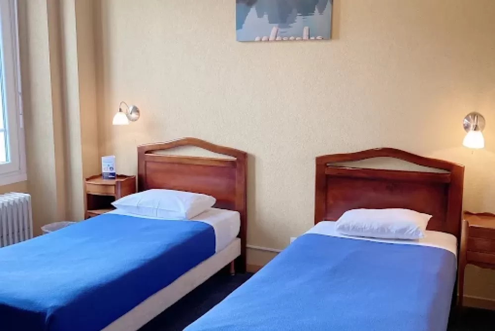 Literie de qualité médiocre, Draps tâchés odeurs de tabac dans les couloirs et les chambres. Chambres vieillotes un coup de rénovation serait bienvenue. Bruit toute la nuit Très mauvaise insonorisation. Prise électrique non fixée au mur. Sur 2 lampes de chevet 1 fonctionnait Petit déjeuner très cher pour la qualité + de 10€/personne. Croissants et pains au chocolat pas frais Peu de choix. Nous ne sommes pas bilingue Dialogue compliqué Ont du mal à comprendre le français.