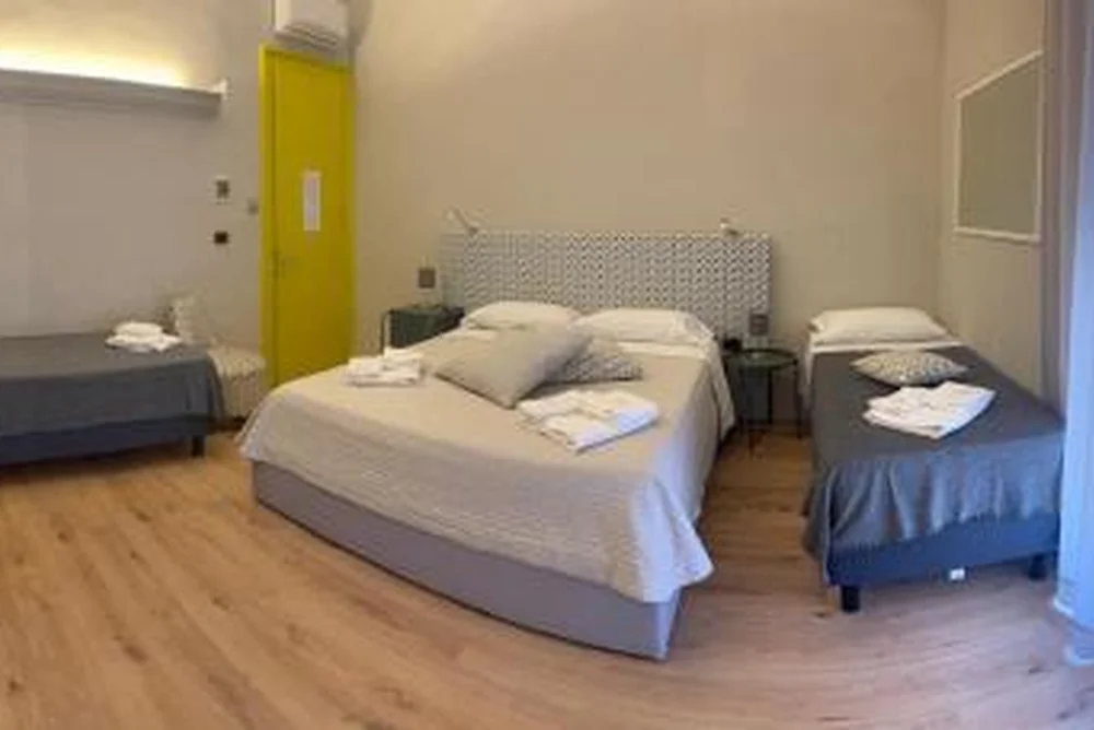 Camere molto belle, ben fornite e spaziose in posizione centralissima. È presente anche un kit omaggio con spazzolino, dentifricio, cuffietta per doccia, sapone, detergente intimo e crema corpo. Area comune per la colazione ben fornita con succhi, the, caffè latte , yogurt, brioches fresche (molto buone), cereali e pasticceria confezionata. Non metto 5 stelle perché il checkout è da farsi "assolutamente entro le 9.30" e in una località turistica a mio parere è troppo presto e anche per la cortesia della signora, a cui sembra di dare fastidio.