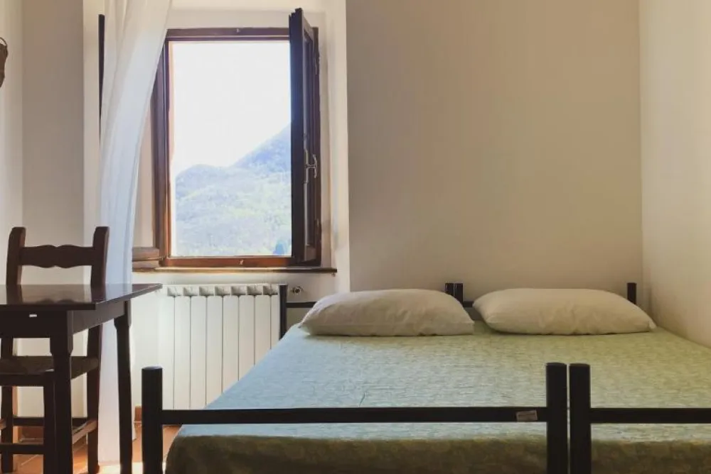 Le camere, pur essendo essenziali, sono dotate dell’indispensabile per un soggiorno confortevole: cuscini, coperte, armadio, comodini, lampade e riscaldamento. Una delle camere dispone di balcone panoramico con vista sulla valle. I servizi igienici sono in comune e una doccia condivisa è disponibile per gli ospiti. L’ambiente rustico e la semplicità degli spazi rendono il soggiorno autentico e rilassante, ideale per chi cerca contatto con la natura.