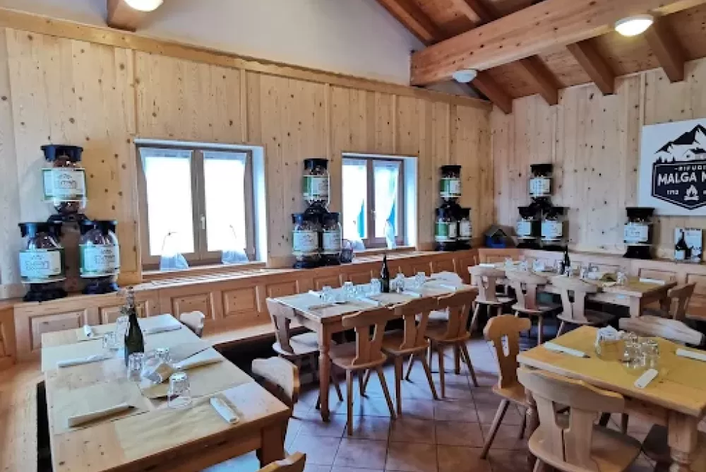 All’interno della malga si trovano prodotti tipici trentini e piatti della tradizione locale, perfetti per un pranzo autentico dopo l’escursione. La struttura comprende un ristorante e offre anche la possibilità di pernottare in uno dei quattro piccoli ambienti con bagno in comune. In estate è attiva come agritur e in inverno resta frequentata, soprattutto nei fine settimana e durante le vacanze invernali. Inoltre, è un luogo molto amato dalle famiglie con bambini che si divertono con slittini o semplicemente trascorrono tempo in mezzo alla natura.