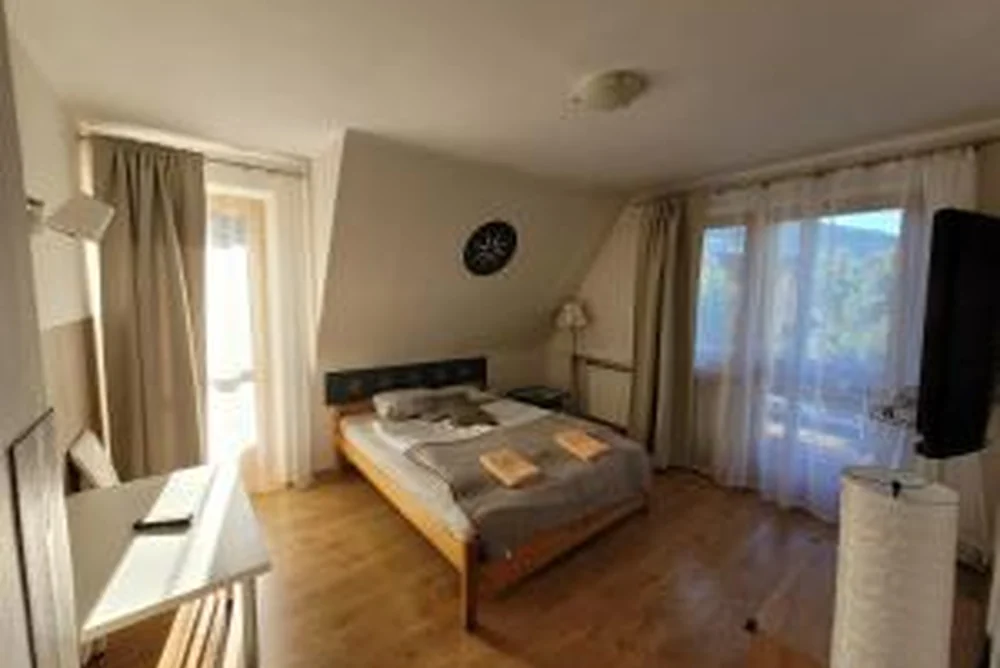 Mieliśmy krociutki pobyt, ładny pokój z łazienką i dużym balkonem, blisko na szlaki i do sklepu. Plac zabaw dla dzieci :huśtawka , zjeżdżalnia, odjęłam jedną gwiazdkę, chociaż chciałam odjąć więcej ale jest to do poprawy więc tylko jedna, ze względu na liczne psie kupy wokół tych huśtawek i zjeżdżalni.